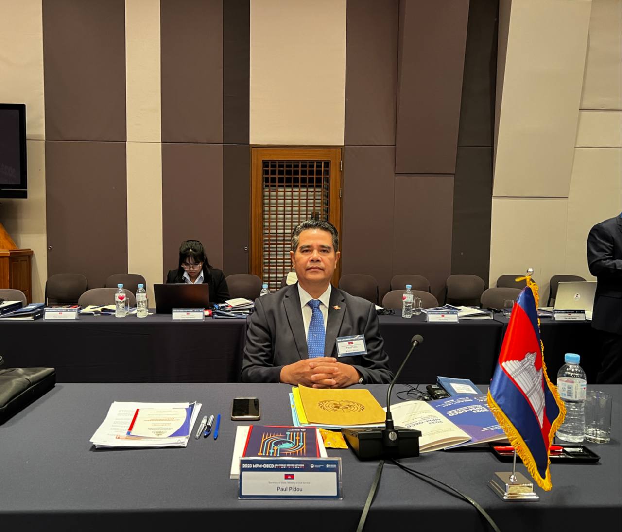 ឯកឧត្តម ប៉ូល ពីឌូ រដ្ឋលេខាធិការ នៃក្រសួងមុខងារសាធារណៈ បានដឹកនាំប្រតិភូចូលរួមកិច្ចប្រជុំ នៅសាធារណរដ្ឋកូរ៉េ ស្ដីពី «The New Asia Public Service Network» ដែលប្រព្រឹត្តទៅចាប់ពីថ្ងៃទី២ ដល់ថ្ងៃទី៣ ខែវិច្ឆិកា ឆ្នាំ២០២៣ និងបានចូលរួមធ្វើបទបង្ហាញលើប្រធានបទស្តីពី «ការទាក់ទាញមន្រ្តីរាជការជំនាន់ថ្មី (Attracting the New Generation of Civil Servants)» ជូនអង្គប្រជុំ ក្នុងកិច្ចពិភាក្សាតុមូលទី២ នៃកិច្ចប្រជុំក្នុងថ្ងៃដំបូង។