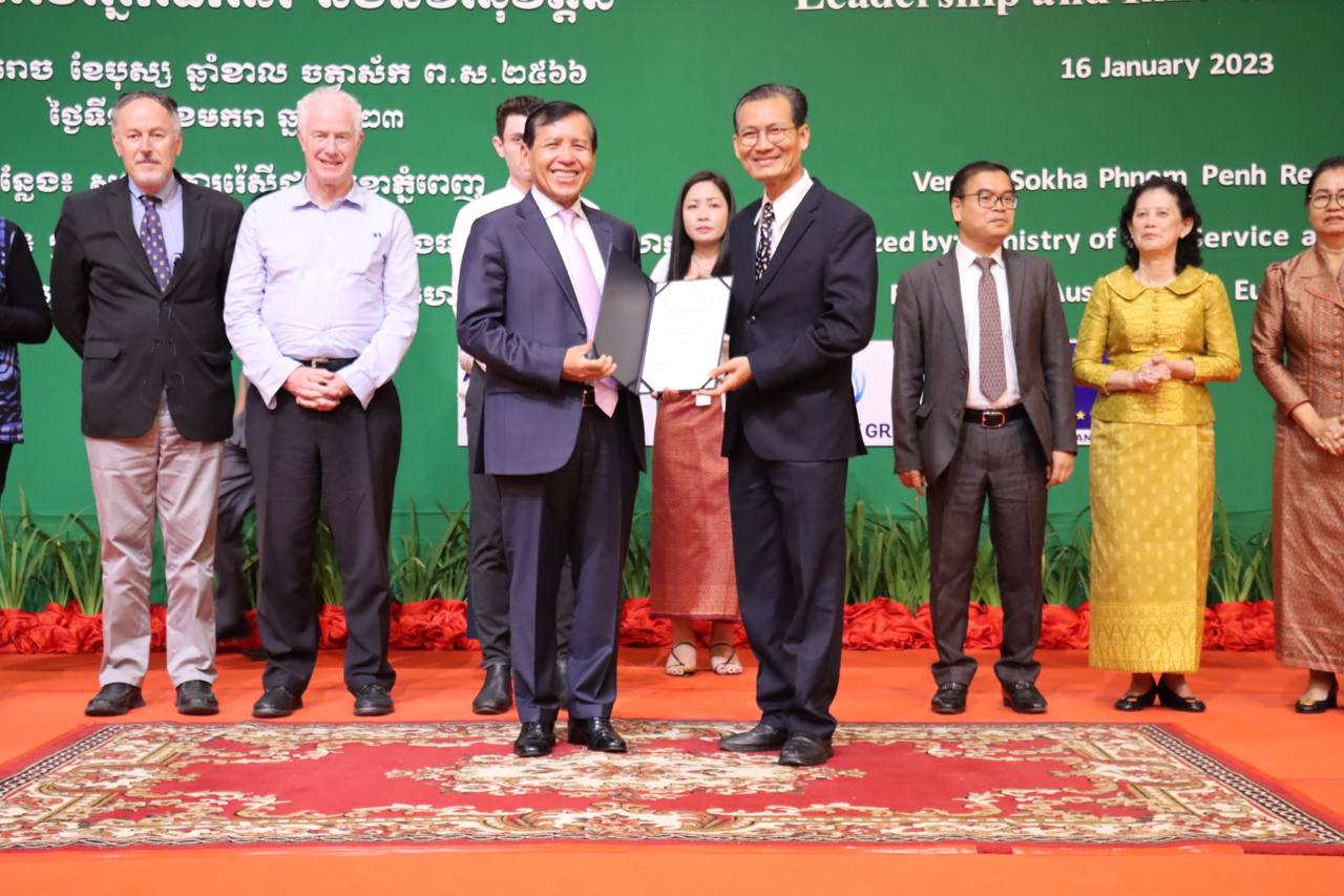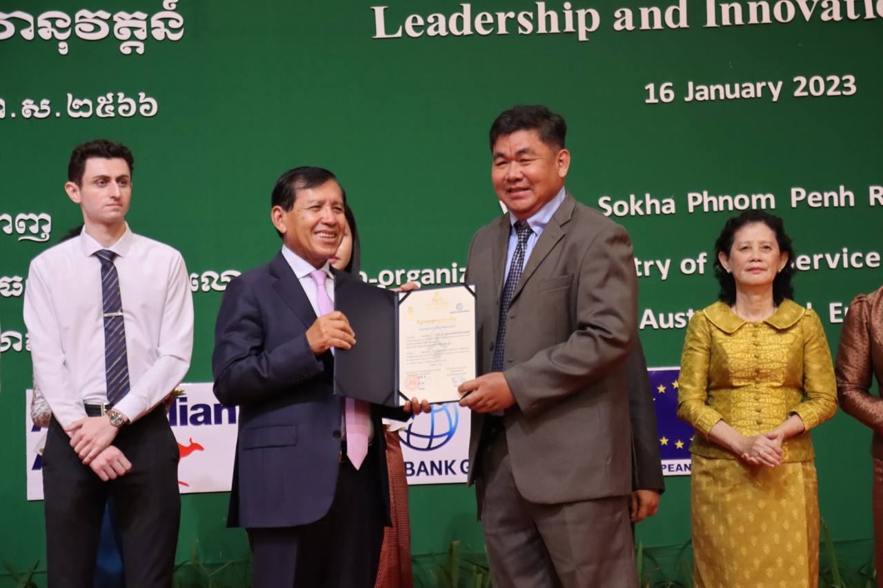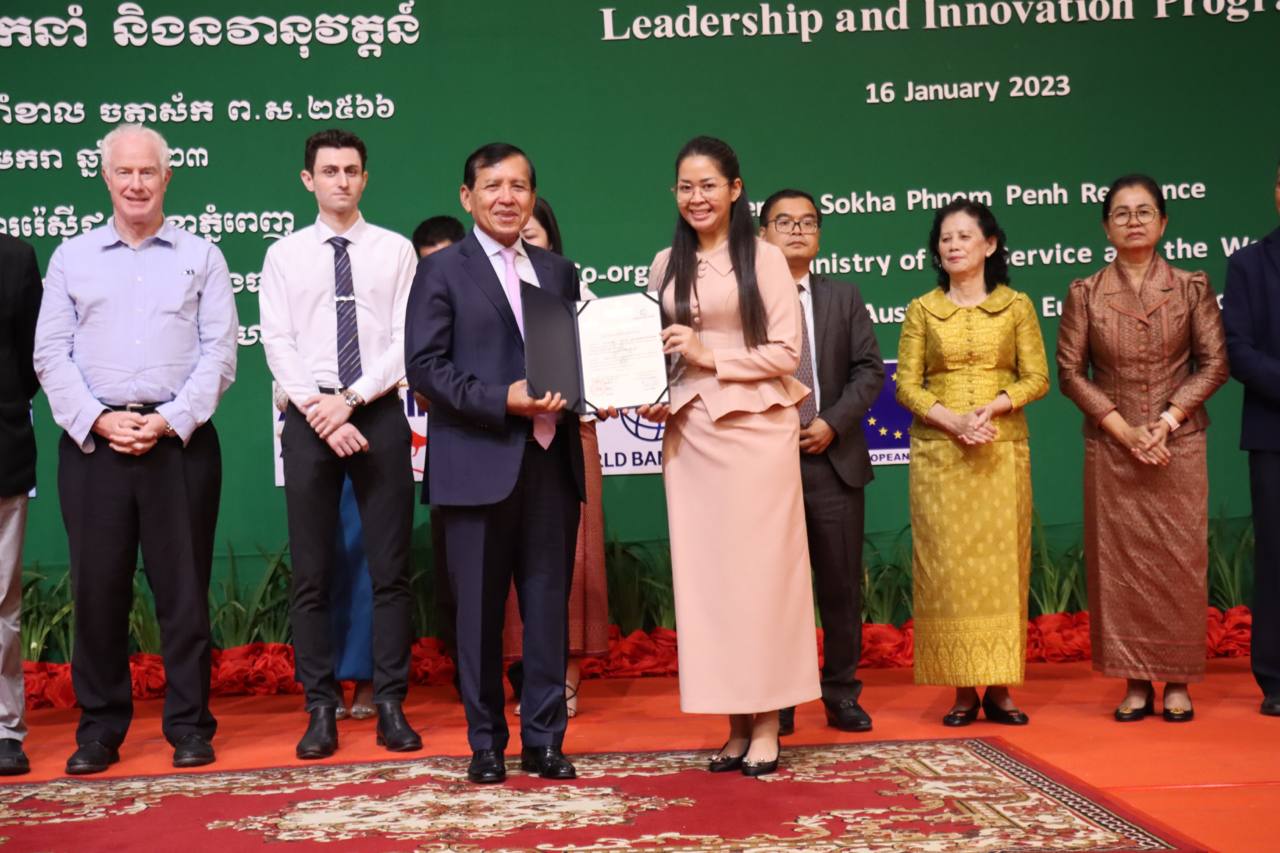 ឯកឧត្តម ព្រុំ សុខា រដ្ឋមន្ត្រីក្រសួងមុខងារសាធារណៈ អញ្ជើញចូលរួមក្នុងពិធីបិទវគ្គបណ្ដុះបណ្ដាលជំនាន់ទី៣ បើកវគ្គបណ្ដុះបណ្ដាលជំនាន់ទី៤ និងផ្តល់បាឋកថាចែករំលែកបទពិសោធន៍ នៃកម្មវិធីភាពជាអ្នកដឹកនាំ និងនវានុវត្តន៍