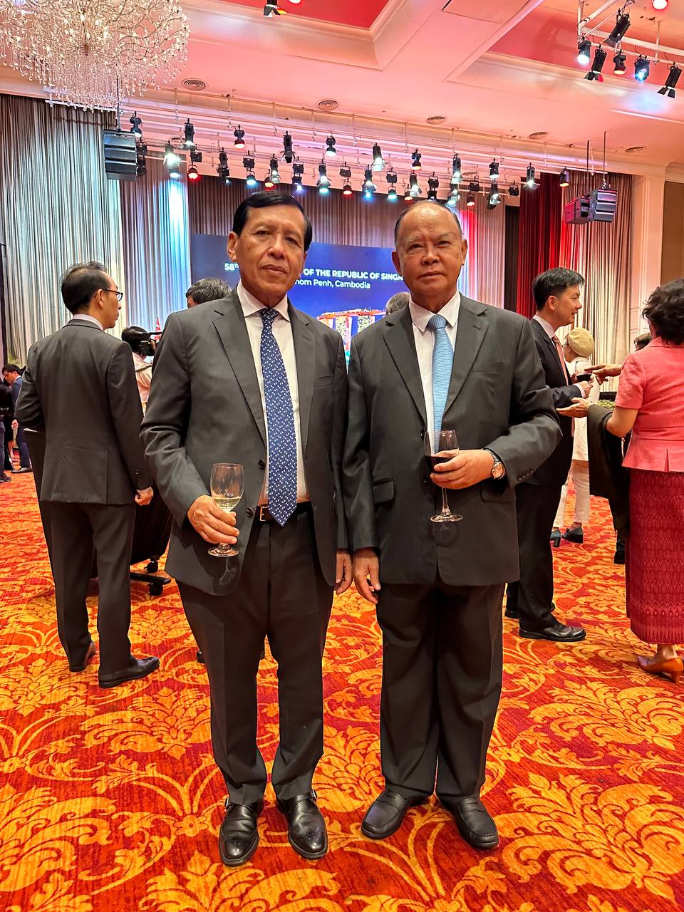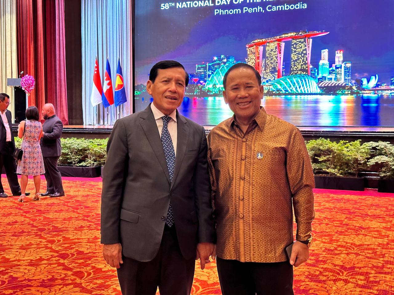 (ភ្នំពេញ)៖ នៅល្ងាចថ្ងៃទី១០ ខែសីហា ឆ្នាំ២០២៣ នេះ ឯកឧត្តម ព្រុំ សុខា រដ្ឋមន្រ្តីក្រសួងមុខងារសាធារណៈ បានចូលរួមក្នុងពិធីបុណ្យជាតិរបស់សារធារណរដ្ឋសឹង្ហបុរី នៅសណ្ឋាគារ សូហ្វីតែល ភ្នំពេញ ភូគីត្រា ។ ពិធីជប់លៀងអបអរថ្ងៃបុណ្យជាតិនេះរៀបចំឡើងដើម្បីរំលឹកខួបលើកទី៥៨ នៃការទទួលបានឯករាជ្យទាំងស្រុងពីប្រទេសម៉ាឡេស៊ីក្នុងឆ្នាំ១៩៦៥។ ពិធីនេះមានការចូលរួមពីមន្ត្រីជាន់ខ្ពស់រាជរដ្ឋាភិបាល ក្រសួង ស្ថាប័ន និងតំណាងអង្គការក្រៅរដ្ឋាភិបាលផងដែរ៕
