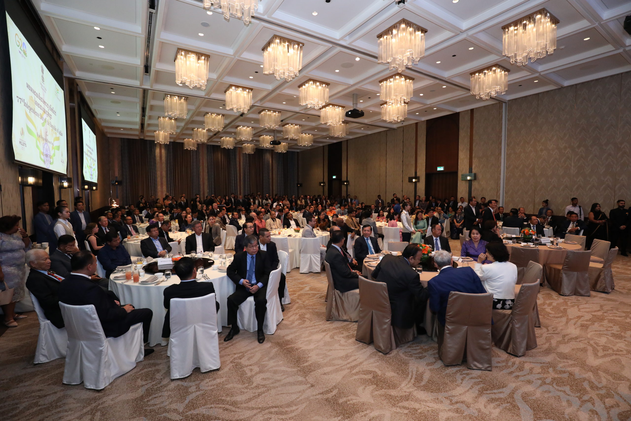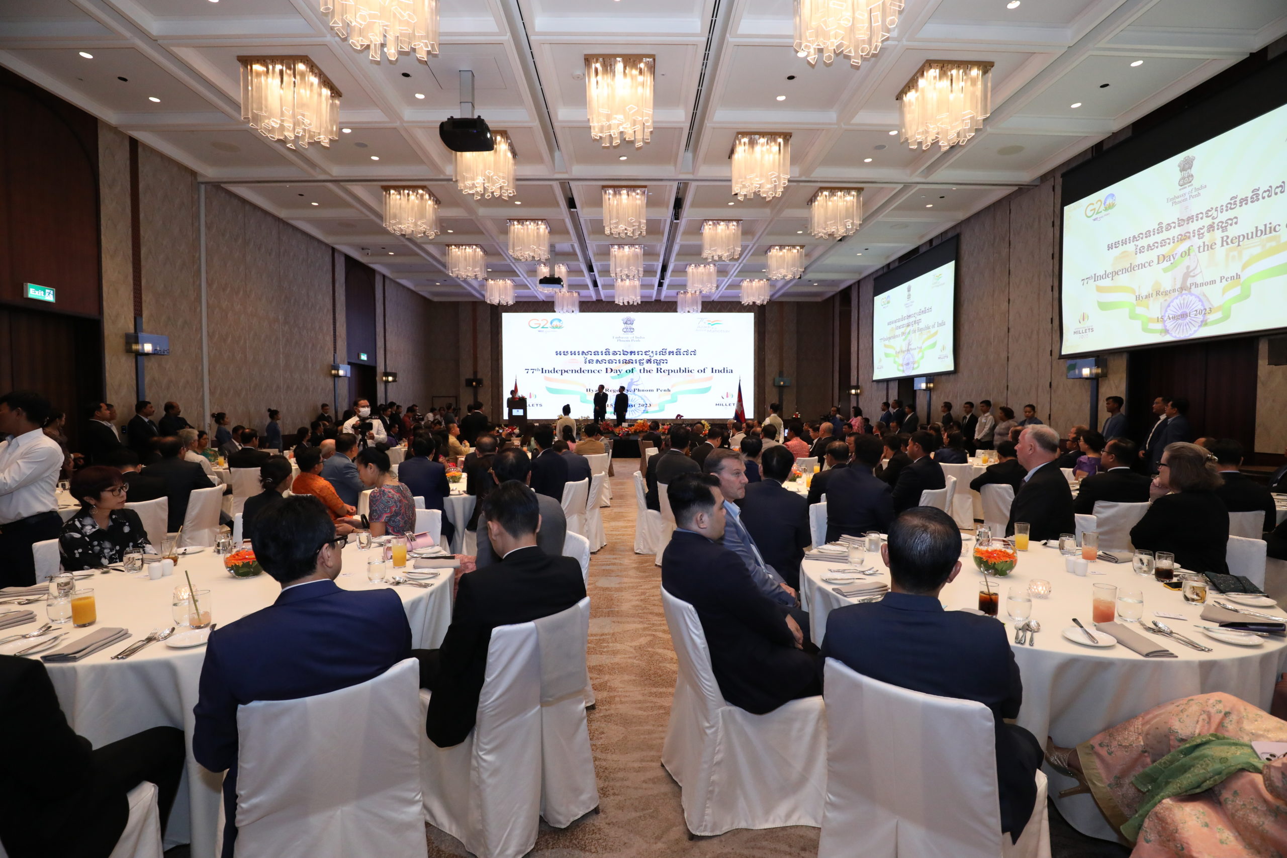 (ភ្នំពេញ)៖ កាលពីល្ងាចថ្ងៃទី១៥ ខែសីហា ឆ្នាំ២០២៣នេះ ស្ថានទូតសាធារណរដ្ឋឥណ្ឌាប្រចាំកម្ពុជា បានរៀបចំពិធីអបអរសាទរខួបលើកទី៧៧ នៃទិវាបុណ្យឯករាជ្យជាតិឥណ្ឌា នៅសណ្ឋាគារហៃយ៉តរីជិនស៊ី ភ្នំពេញ (Hyatt Regency Phnom Penh)។