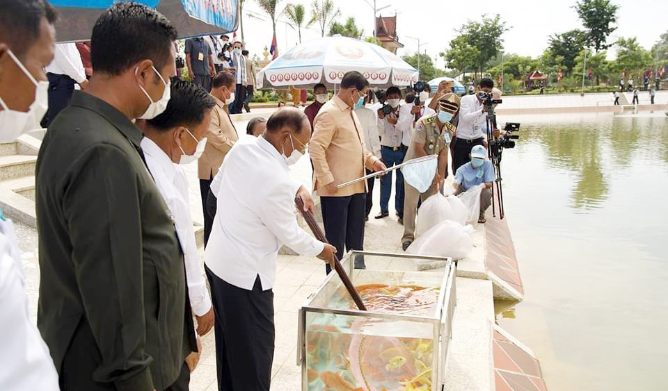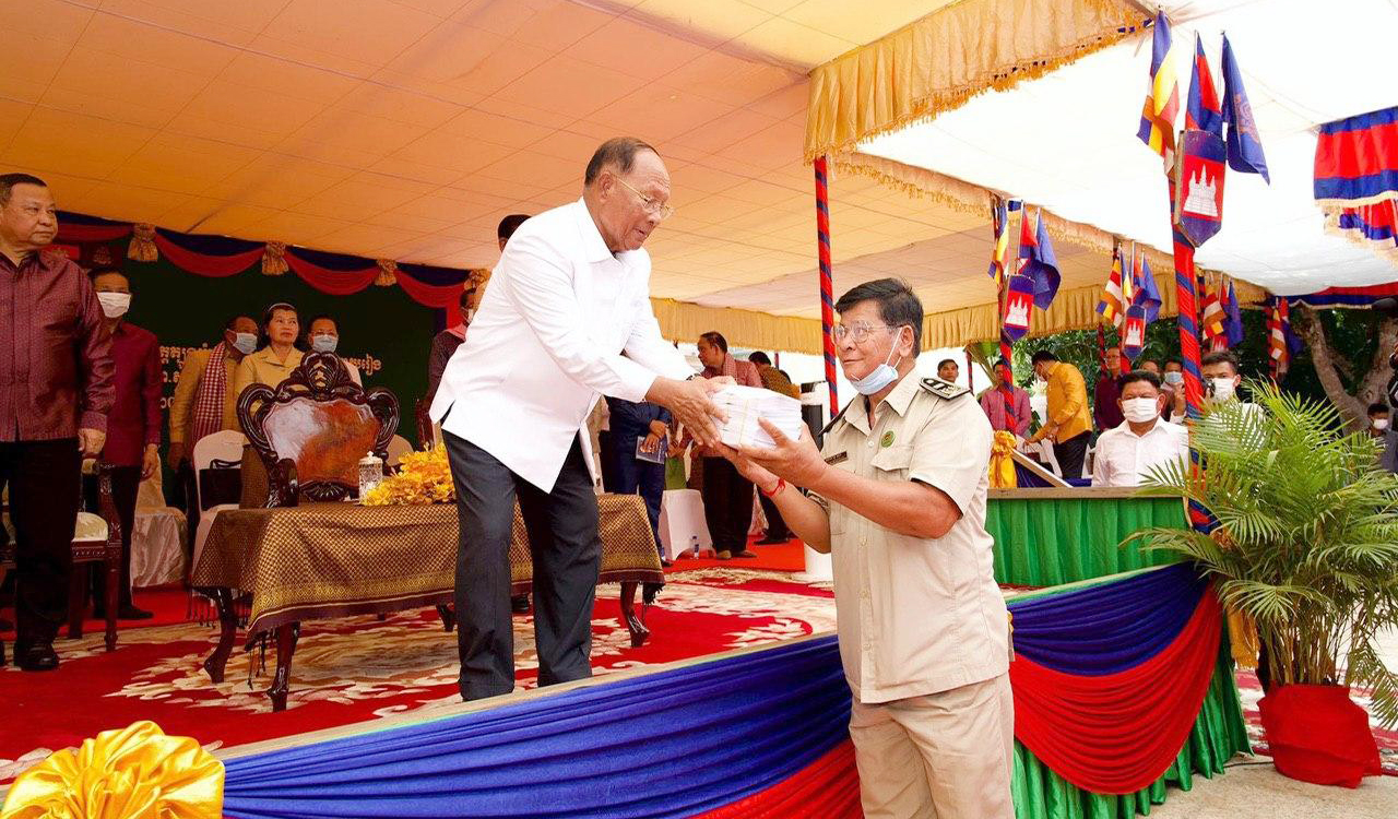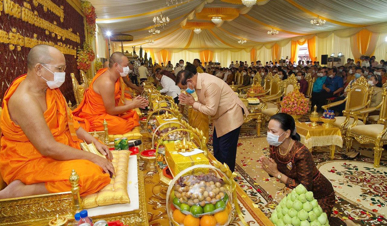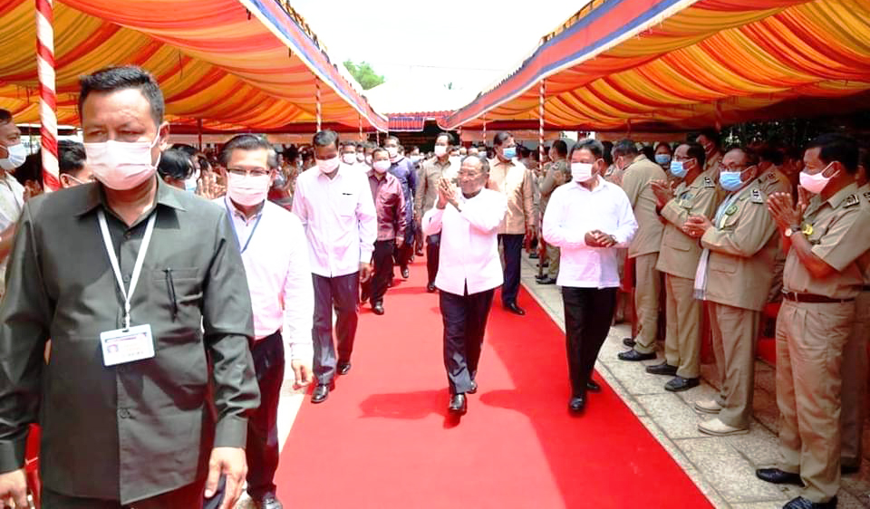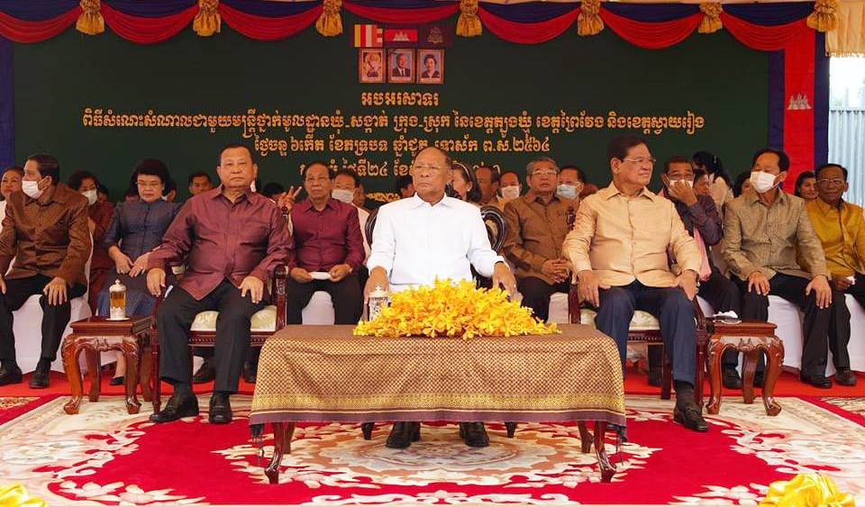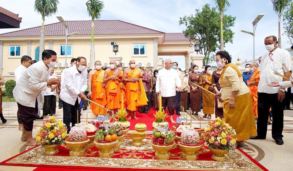ខេត្តត្បូងឃ្មុំ៖ នាព្រឹកថ្ងៃចន្ទ ២កើត ខែភទ្របទ ឆ្នាំជូត ទោស័ក ពុទ្ធសករាជ ២៥៦៤ ត្រូវនឹងថ្ងៃទី២៤ ខែសីហា ឆ្នាំ២០២០ ឯកឧត្តម ព្រុំ សុខា រដ្ឋមន្ត្រីក្រសួងមុខងារសាធារណៈ អញ្ជើញចូលរួមពិធីសូត្រមន្តប្រោះព្រំ “អាស្រម មរតកចក្រី” ជូនចំពោះសម្តេចអគ្គមហាពញាចក្រី ហេង សំរិន និងសម្តេចធម្មវិសុទ្ធវង្សា សៅ ទី ហេង សំរិន ស្ថិតនៅភូមិអន្លង់ជ្រៃ ឃុំកក់ ស្រុកពញាក្រែក ខេត្តត្បូងឃ្មុំ។