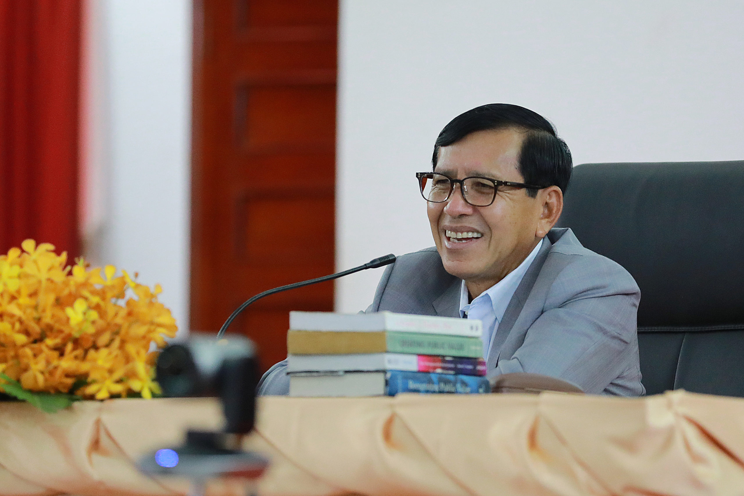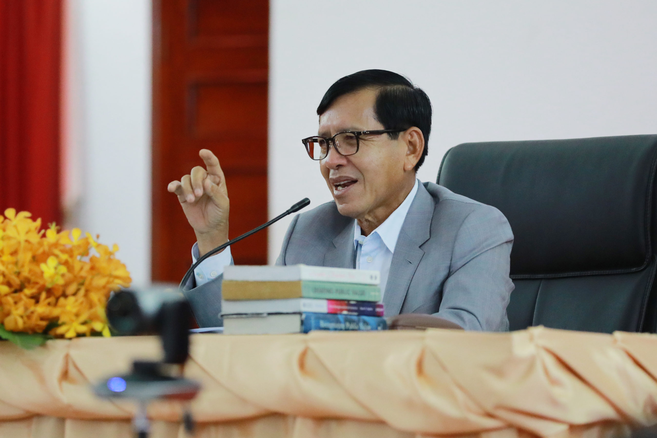 (ភ្នំពេញ)៖ ឯកឧត្តម ព្រុំ សុខា រដ្ឋមន្ត្រីក្រសួងមុខងារសាធារណៈ និងជាប្រធានក្រុមប្រឹក្សាភិបាលសាលាភូមិន្ទរដ្ឋបាល បានអញ្ជើញធ្វើបាឋកថាចែករំលែកបទពិសោធន៍ស្តីពី «ភាពជាអ្នកដឹកនាំក្នុងរដ្ឋបាលសាធារណៈ» សម្រាប់សិក្ខាកាមជាន់ខ្ពស់ ជំនាន់ទី២ នៃវគ្គបណ្តុះបណ្តាលភាពជាអ្នកដឹកនាំនិងនវានុវត្តន៍ និងសិស្សមន្រ្តីជាន់ខ្ពស់ជំនាន់ទី១២ នៃសាលាភូមិន្ទរដ្ឋបាល។
