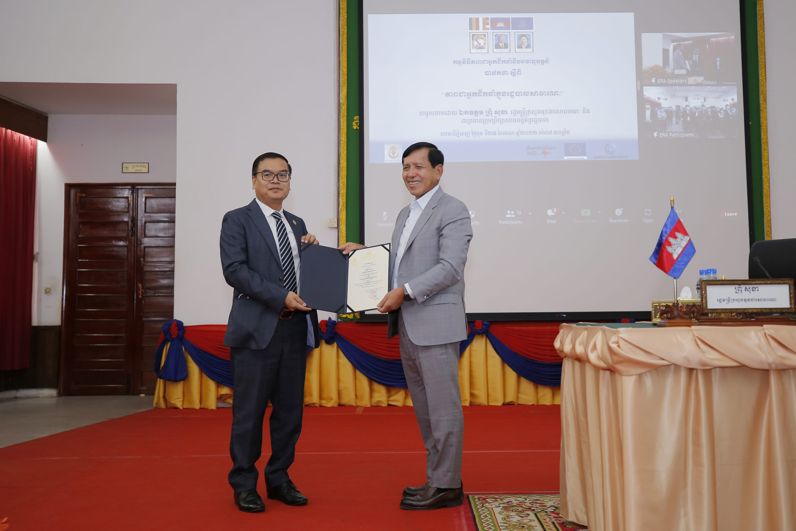 ឯកឧត្តម ព្រុំ សុខា រដ្ឋមន្រ្តីក្រសួងមុខងារសាធារណៈ អញ្ជើញធ្វើបាឋកថាចែករំលែកបទពិសោធន៍សម្រាប់សិក្ខាកាមជាន់ខ្ពស់ជំនាន់ទី២ និងសិស្សមន្រ្តីជាន់ខ្ពស់ជំនាន់ទី១២ នៃសាលាភូមិន្ទរដ្ឋបាល