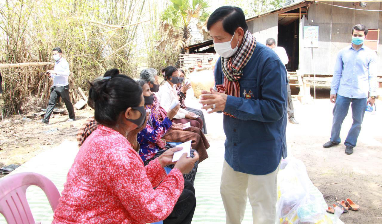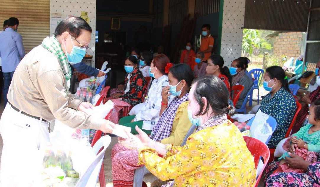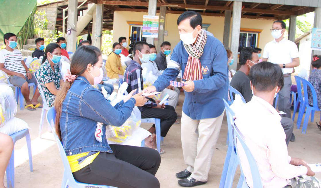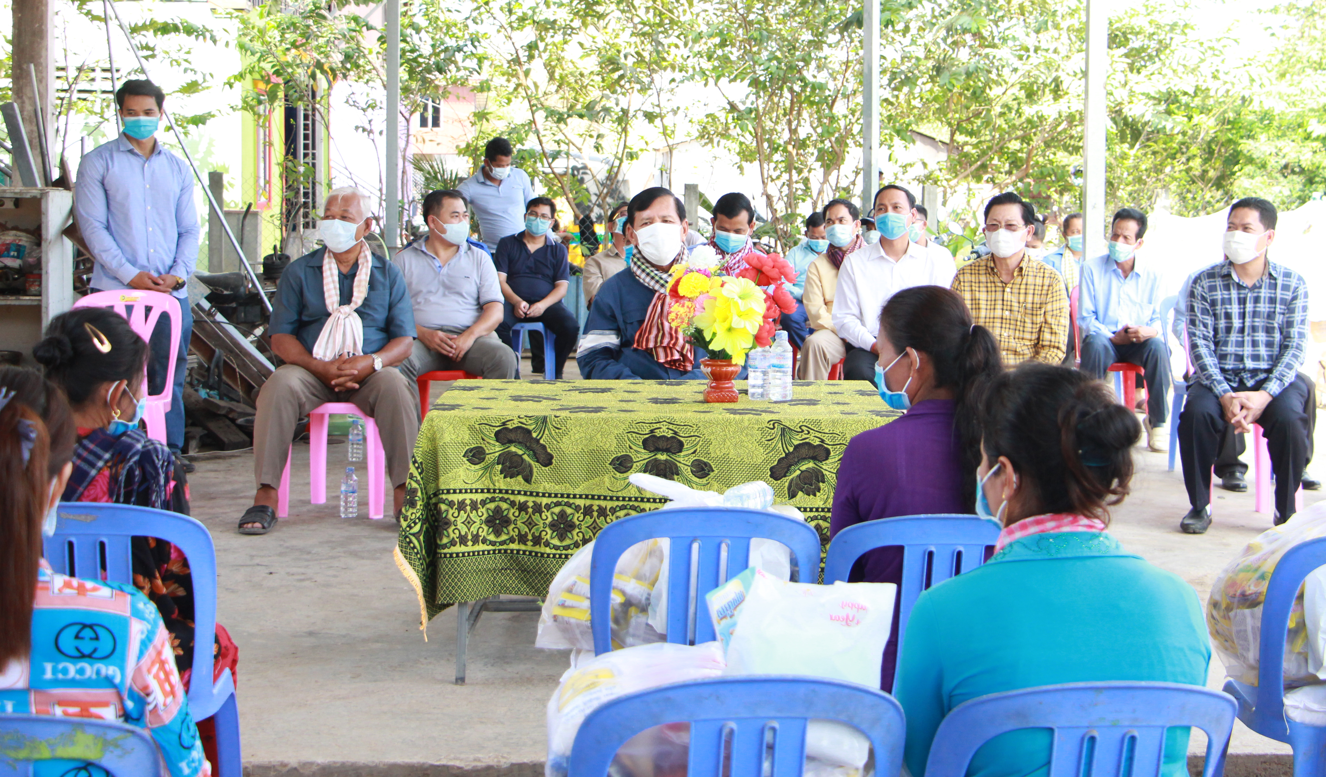 ទន្ទឹមនឹងនោះ ត្រូវរាយការណ៍បន្ទាន់ឱ្យក្រុមគ្រូពេទ្យឬមណ្ឌលសុខភាពអំពីករណីសង្ស័យថាមានការឆ្លងកូវីដ១៩ ដើម្បីទទួលការឆ្លើយតប ដោះស្រាយឱ្យទាន់ពេលវេលា។ ចំពោះផលប៉ះពាល់សេដ្ឋកិច្ចនិងសង្គមកិច្ចមកលើជីវភាពរបស់បងប្អូនកម្មករ ពលករចំណាកស្រុក ឯកឧត្តមប្រធានក្រុមការងារបានគូសបញ្ជាក់ថា ដើម្បីរួមចំណែកប្រឈមមុខផលវិបាកទាំងនេះ ក្រៅពីគោលនយោបាយនិងការយកចិត្តទុកដាក់របស់រាជរដ្ឋាភិបាល រួមជាមួយនឹងការជ្រោមជ្រែងរបស់ក្រុមការងារនានានៅក្នុងមូលដ្ឋាន យើងត្រូវបន្តរួមគ្នាពុះពារជម្នះរាល់ការលំបាកប្រការសំខាន់បំផុតចំពោះមុខគឺការខិតខំប្រឹងប្រែងរបស់បងប្អូនប្រជាពលរដ្ឋផ្ទាល់ដើម្បីរក្សាស្ថេរភាពជីវភាពប្រចាំថ្ងៃ ដោយត្រូវរួមសាមគ្គីបង្កបង្កើនផលកសិកម្ម ជួយយកអាសារគ្នាទៅវិញទៅមក ឆ្លងឱ្យផុតគ្រោះកំណាចជាបណ្តោះអាសន្ននេះ ហើយត្រូវមានជំនឿមុតមាំថា ក្រោមការដឹកនាំរបស់ សម្តេចតេជោ ហ៊ុន សែន យើងពិតជាប្រយុទ្ធឈ្នះកូវីដ១៩ ឆ្លងកាត់បានរាល់គ្រោះភ័យទាំងពួងនិងជម្នះដោះស្រាយបានរាល់ផលប៉ះពាល់ទាំងឡាយនៃវិបត្តិកូវីដ១៩នេះ ដើម្បីរក្សាការពារជីវភាពជាប្រក្រតីឡើងវិញរបស់គ្រួសារនីមួយៗ របស់សហគមន៍នីមួយៗ សំដៅបន្តរក្សាការពារសុខសន្តិភាពនិងសេចក្តីសុខក្សេមក្សាន្តរបស់សង្គមជាតិយើងក្នុងពេលអនាគត។ ក្នុងឱកាសនោះដែរ ក្រុមការងារក៏បានចែកជូនប្រជាពលរដ្ឋចំនួន១៣០គ្រួសារ នូវសម្ភារៈមានម៉ាសពាក់មុខ សាប៊ូលាងដៃនិងស្បៀងអាហារ ព្រមទាំងថវិកាមួយចំនួន។