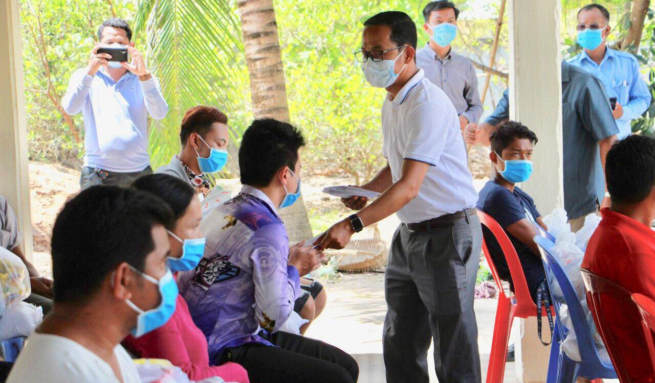 ឯកឧត្តម ព្រុំ សុខា រដ្ឋមន្ត្រីក្រសួងមុខងារសាធារណៈ និងក្រុមការងារស្រុកបាភ្នំ ចុះសួរសុខទុក្ខកម្មករ ពលករចំណាកស្រុក ដែលបានវិលត្រឡប់មករស់នៅក្នុងស្រុកកំណើតវិញ