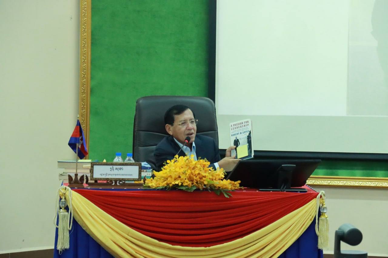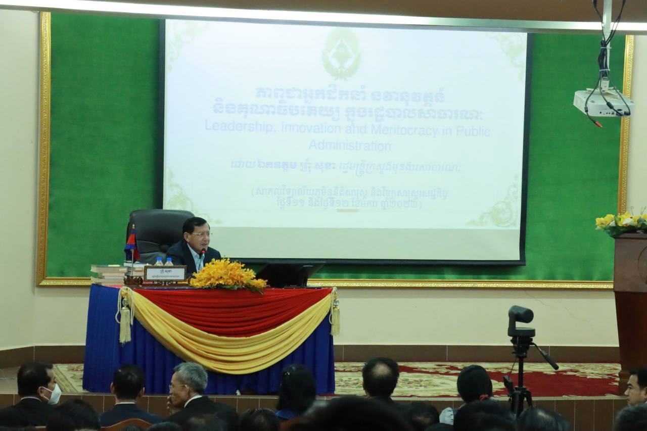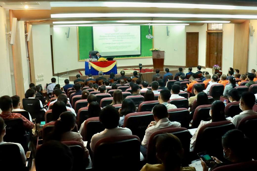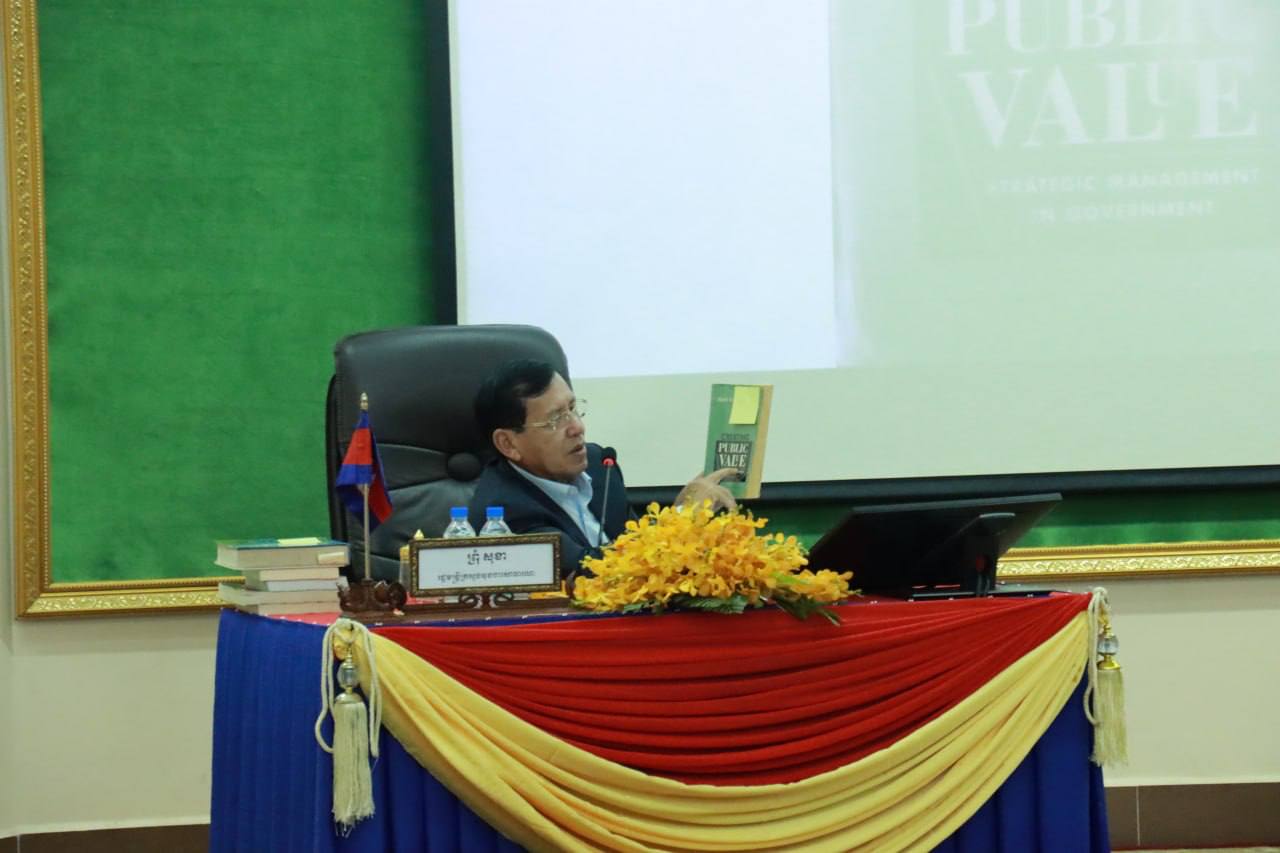 ឯកឧត្តម ព្រុំ សុខា រដ្ឋមន្ត្រីក្រសួង​មុខងារ​សាធារណៈ និងជាប្រធានគណៈកម្មាធិការ​កែទម្រង់​រដ្ឋបាល​សាធារណៈ ផ្ដល់បាឋកថាចំណេះដឹងទូទៅស្តីពីភាពជាអ្នកដឹកនាំ នវានុវត្តន៍ និងគុណាធិបតេយ្យក្នុង​រដ្ឋបាល​សាធារណៈ សម្រាប់និស្សិតបរិញ្ញាប័ត្រនិងបរិញ្ញាប័ត្រជាន់ខ្ពស់នៃសាកលវិទ្យាល័យ​ភូមិន្ទនីតិ​សាស្ត្រ និងវិទ្យាសាស្ត្រសេដ្ឋកិច្ច