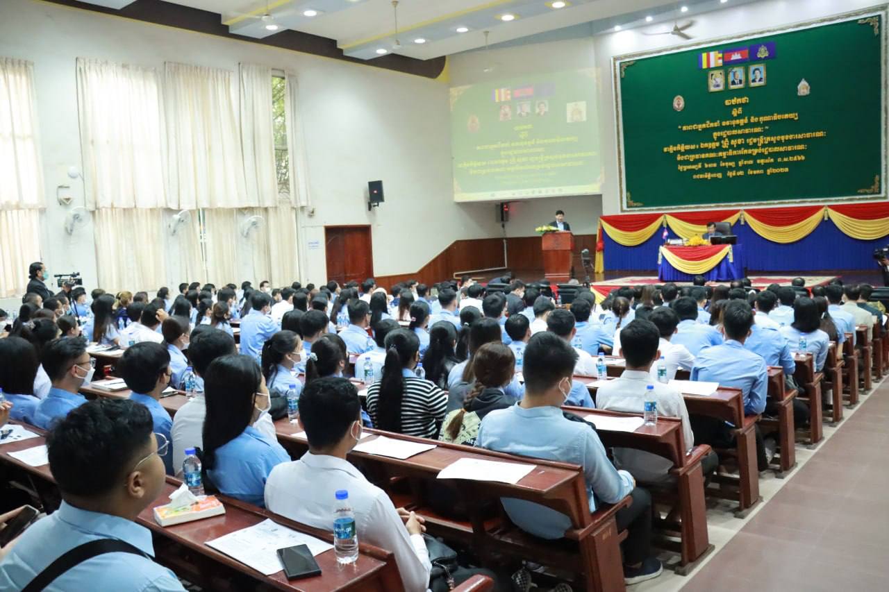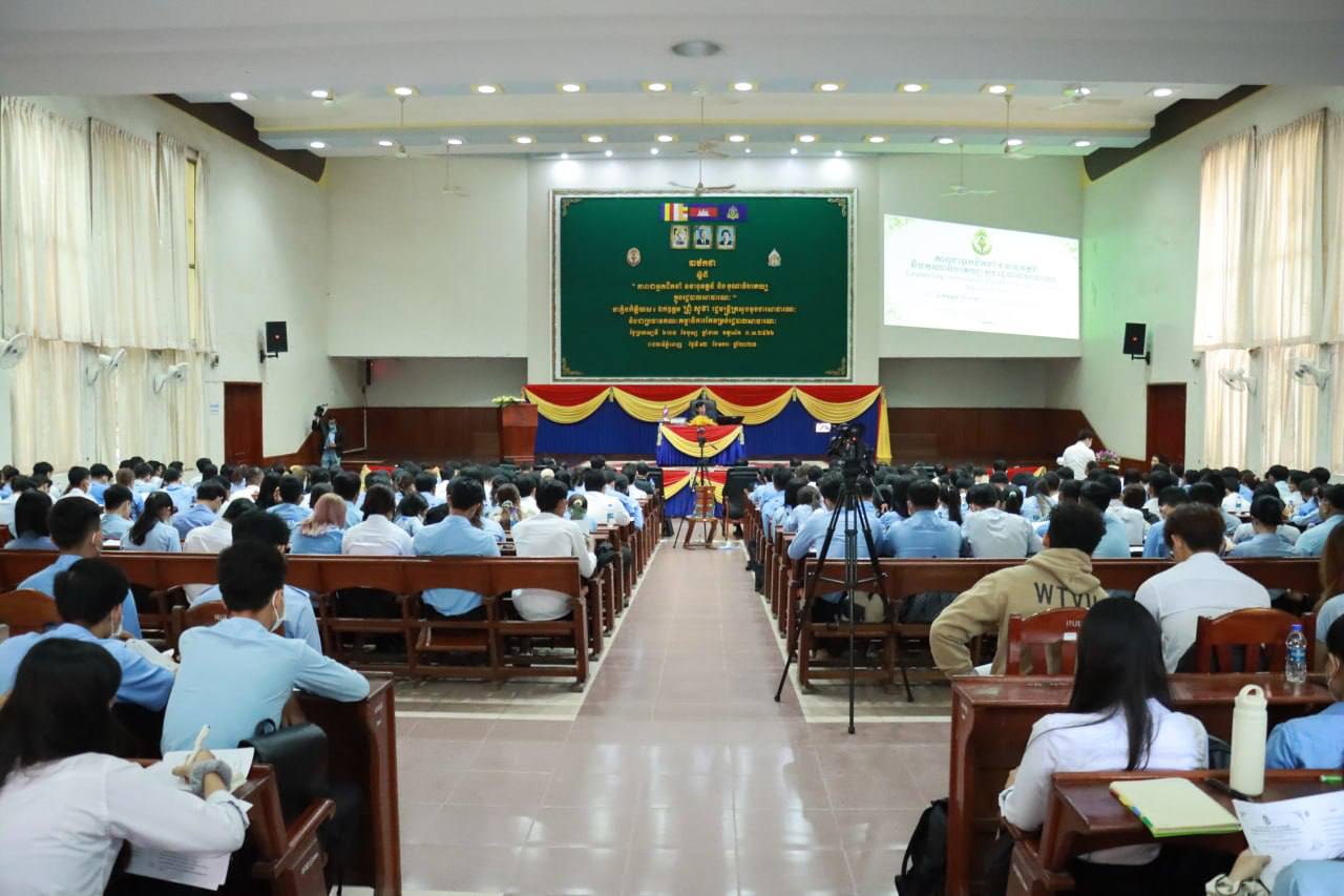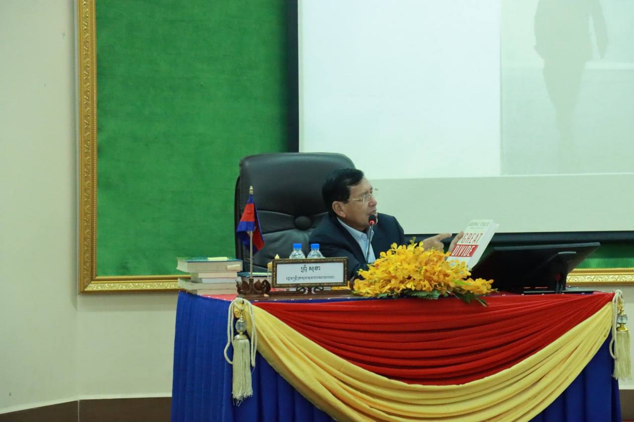 ឯកឧត្តម ព្រុំ សុខា រដ្ឋមន្ត្រីក្រសួង​មុខងារ​សាធារណៈ និងជាប្រធានគណៈកម្មាធិការ​កែទម្រង់​រដ្ឋបាល​សាធារណៈ ផ្ដល់បាឋកថាចំណេះដឹងទូទៅស្តីពីភាពជាអ្នកដឹកនាំ នវានុវត្តន៍ និងគុណាធិបតេយ្យក្នុង​រដ្ឋបាល​សាធារណៈ សម្រាប់និស្សិតបរិញ្ញាប័ត្រនិងបរិញ្ញាប័ត្រជាន់ខ្ពស់នៃសាកលវិទ្យាល័យ​ភូមិន្ទនីតិ​សាស្ត្រ និងវិទ្យាសាស្ត្រសេដ្ឋកិច្ច