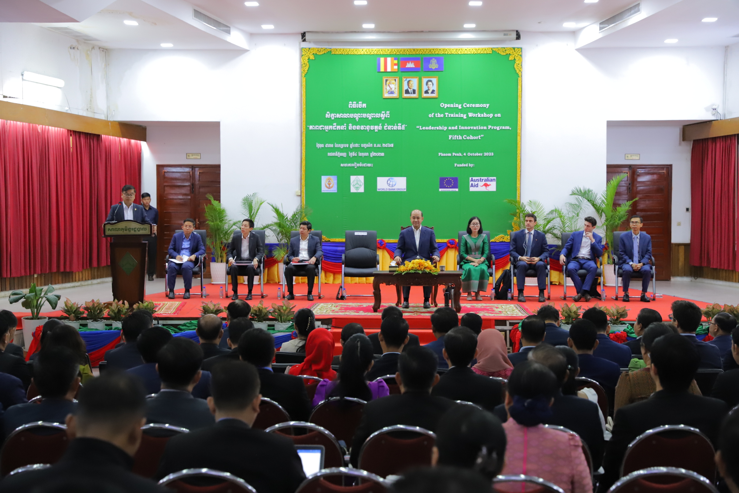 ឯកឧត្តម យក់ ប៊ុនណា រដ្ឋលេខាធិការប្រចាំការ និងជានាយកសាលាភូមិន្ទរដ្ឋបាល នៃក្រសួងមុខងារសាធារណៈ បានរៀបរាប់សាវតានៃ វគ្គបណ្តុះបណ្តាលស្តីអំពី «ភាពជាអ្នកដឹកនាំ និងនវានុវត្តន៍» ថាកន្លងមក សាលាភូមិន្ទរដ្ឋបាលបានរៀបចំវគ្គបណ្តុះបណ្តាលនេះជូនដល់សិក្ខាកាមជាន់ខ្ពស់បានចំនួនបួនជំនាន់មកហើយ។ សិក្ខាកាមដែលបានចូលរួមនៅថ្នាក់ជាតិមានតំណែងចាប់ពីកម្រិតប្រធាននាយកដ្ឋាន រហូតដល់រដ្ឋលេខាធិការឬមុខតំណែងប្រហាក់ប្រហែល និងរដ្ឋបាលថ្នាក់ក្រោមជាតិ ចាប់ពីអភិបាលក្រុង ស្រុក ខណ្ឌ នាយករដ្ឋបាលរាជធានី ខេត្ត អភិបាលរងរាជធានី ខេត្ត រហូតដល់អភិបាលខេត្ត។ ជាលទ្ធផល សិក្ខាកាមចំនួន៦៥៧នាក់(ស្រី១១១នាក់) បានឆ្លងកាត់វគ្គបណ្តុះបណ្តាលដោយជោគជ័យ។ ដោយឡែក សិក្ខាកាមជាន់ខ្ពស់ជំនាន់ទី៥ ដែលមានវត្តមានក្នុងឱកាសបើកវគ្គនាថ្ងៃនេះ មានចំនួនសរុប១៩៧នាក់(ស្រី២៩នាក់) មកពីក្រសួង ស្ថាប័ន អង្គភាពថ្នាក់ជាតិចំនួន៣០ និងរដ្ឋបាលថ្នាក់ក្រោមជាតិ ទាំង២៥រាជធានី ខេត្ត។