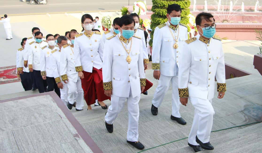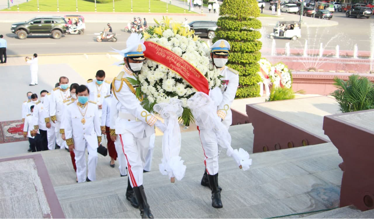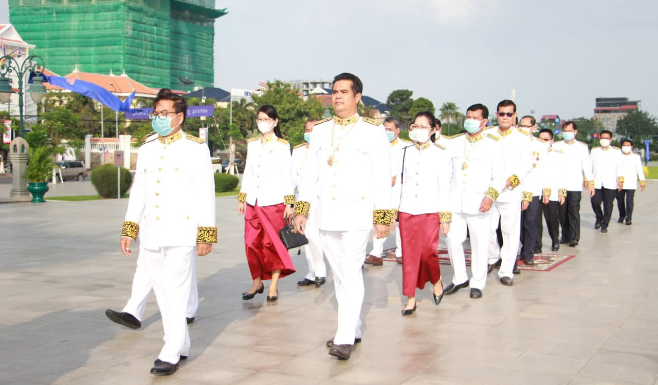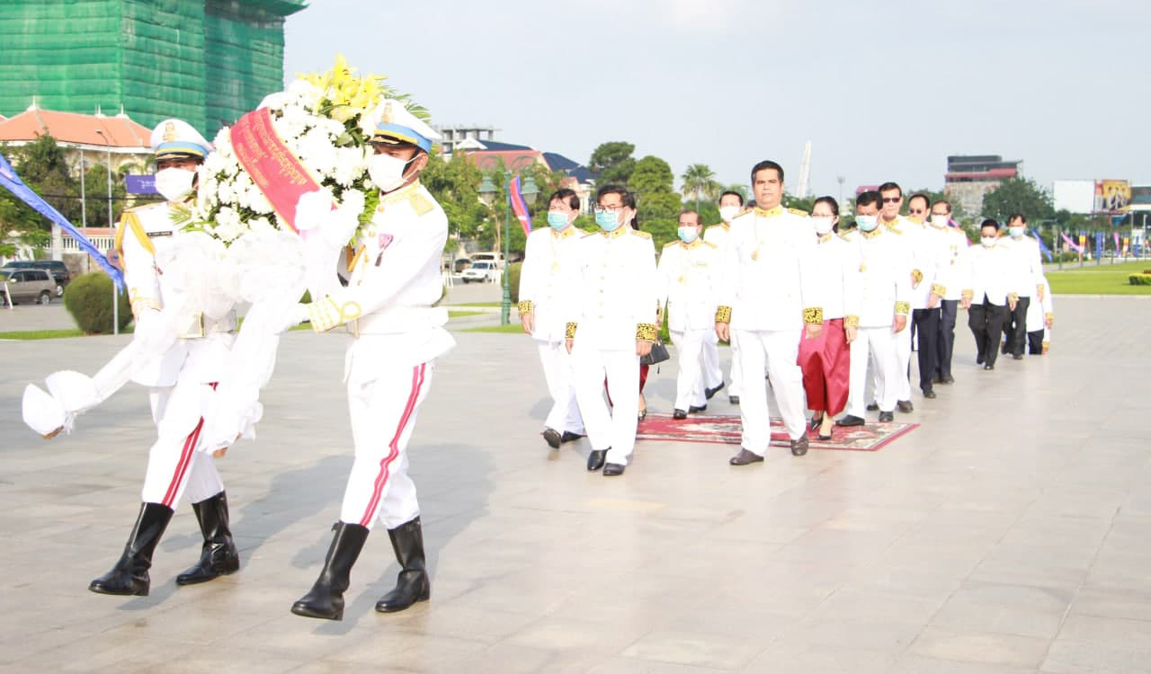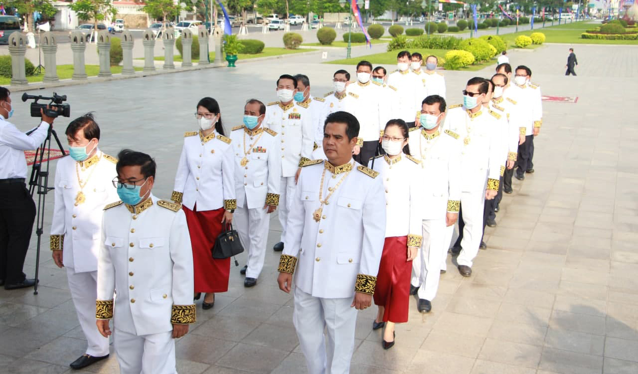 រាជធានីភ្នំពេញ៖ កាលពីរសៀលថ្ងៃអាទិត្យ ៨រោច ខែកត្តិក ឆ្នាំជូត ទោស័ក ព.ស ២៥៦៤ ត្រូវនឹងថ្ងៃទី៨ ខែវិច្ឆិកា ឆ្នាំ២០២០ ឯកឧត្តម យក់ ប៊ុនណា រដ្ឋលេខាធិការប្រចាំការ តំណាងដ៏ខ្ពង់ខ្ពស់ឯកឧត្តម ព្រុំ សុខា រដ្ឋមន្ត្រីក្រសួងមុខងារសាធារណៈ បានដឹកនាំគណៈប្រតិភូក្រសួង ថ្វាយកម្រងផ្កា គោរពវិញ្ញាណក្ខន្ធនៅស្តូបវិមានឯករាជ្យ និងថ្វាយកម្រងផ្កាគោរពព្រះវិញ្ញាណក្ខន្ធ ព្រះករុណា ព្រះបរមរតនកោដ្ឋនៅមណ្ឌលសួនច្បារខាងកើតវិមានឯករាជ្យ។