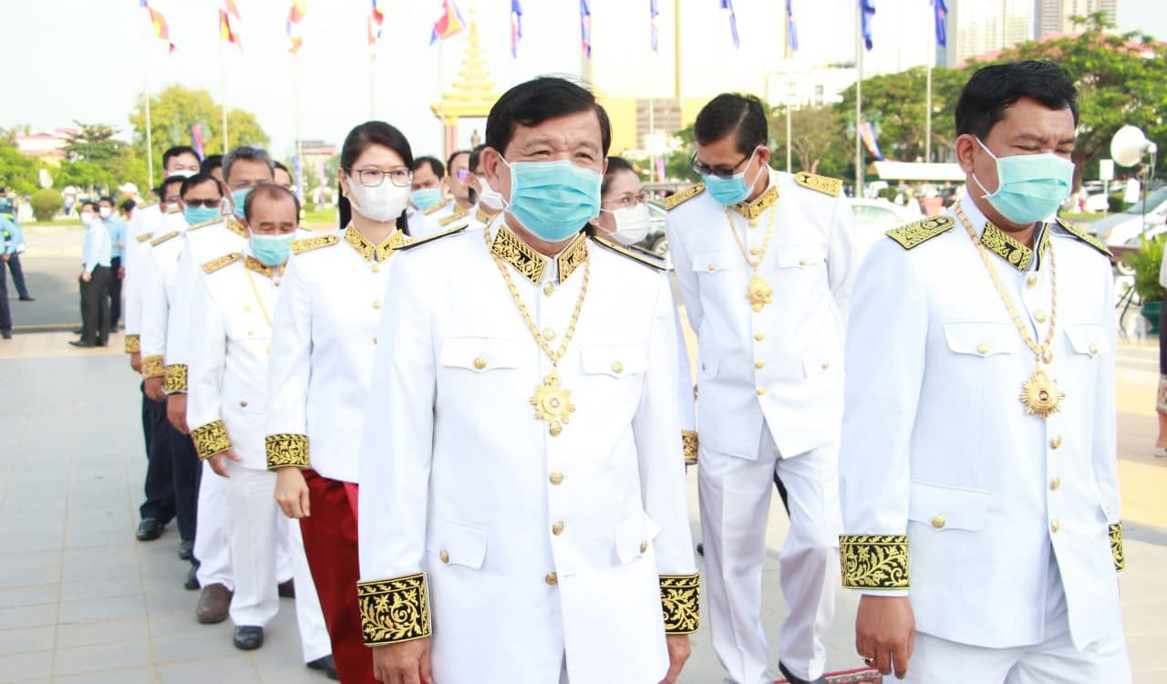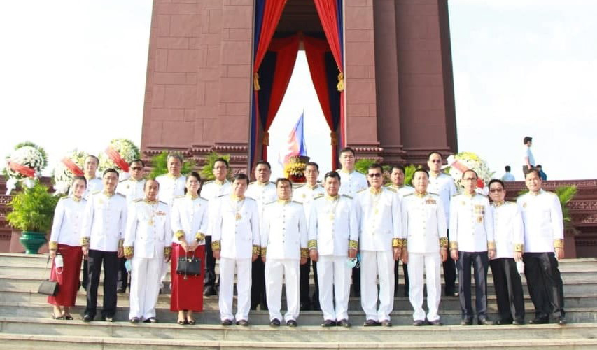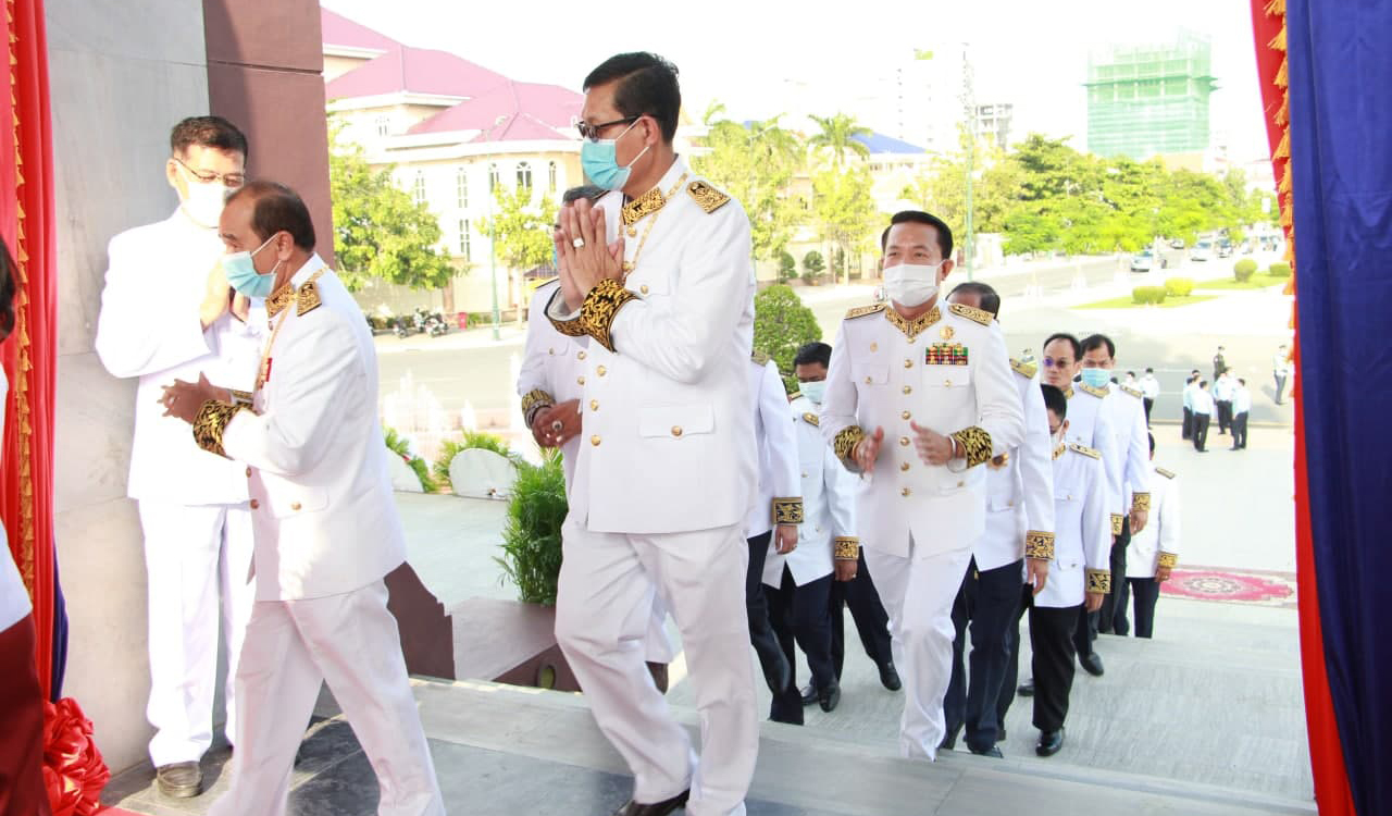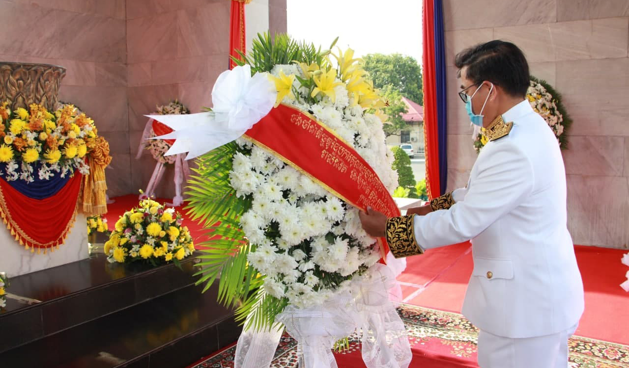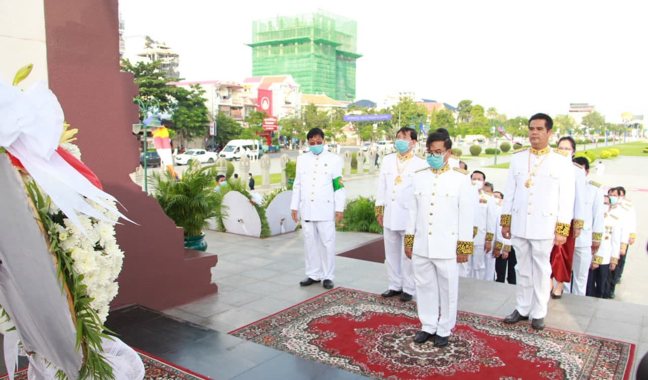 រាជធានីភ្នំពេញ៖ កាលពីរសៀលថ្ងៃអាទិត្យ ៨រោច ខែកត្តិក ឆ្នាំជូត ទោស័ក ព.ស ២៥៦៤ ត្រូវនឹងថ្ងៃទី៨ ខែវិច្ឆិកា ឆ្នាំ២០២០ ឯកឧត្តម យក់ ប៊ុនណា រដ្ឋលេខាធិការប្រចាំការ តំណាងដ៏ខ្ពង់ខ្ពស់ឯកឧត្តម ព្រុំ សុខា រដ្ឋមន្ត្រីក្រសួងមុខងារសាធារណៈ បានដឹកនាំគណៈប្រតិភូក្រសួង ថ្វាយកម្រងផ្កា គោរពវិញ្ញាណក្ខន្ធនៅស្តូបវិមានឯករាជ្យ និងថ្វាយកម្រងផ្កាគោរពព្រះវិញ្ញាណក្ខន្ធ ព្រះករុណា ព្រះបរមរតនកោដ្ឋនៅមណ្ឌលសួនច្បារខាងកើតវិមានឯករាជ្យ។