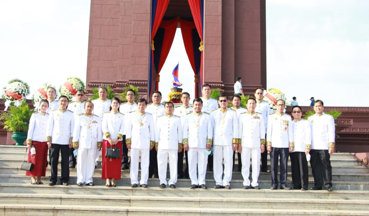 ឯកឧត្តម យក់ ប៊ុនណា រដ្ឋលេខាធិការប្រចាំការ តំណាងដ៏ខ្ពង់ខ្ពស់ឯកឧត្តម ព្រុំ សុខា រដ្ឋមន្ត្រីក្រសួងមុខងារសាធារណៈ ដឹកនាំគណៈប្រតិភូក្រសួង ថ្វាយកម្រងផ្កា គោរពវិញ្ញាណក្ខន្ធនៅស្តូបវិមានឯករាជ្យ និងថ្វាយកម្រងផ្កាគោរពព្រះវិញ្ញាណក្ខន្ធ ព្រះករុណា ព្រះបរមរតនកោដ្ឋ