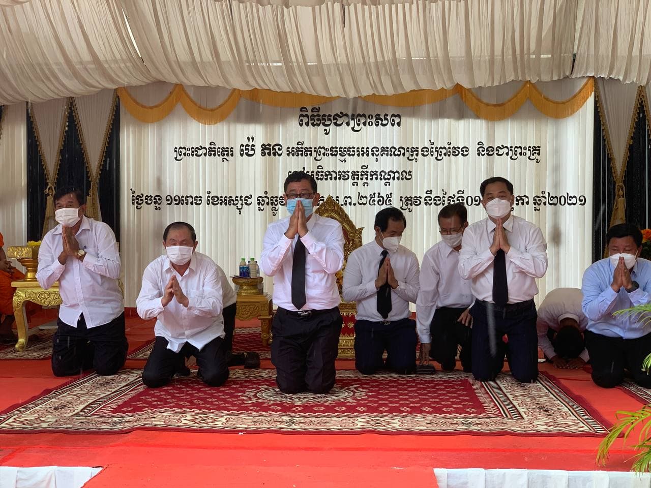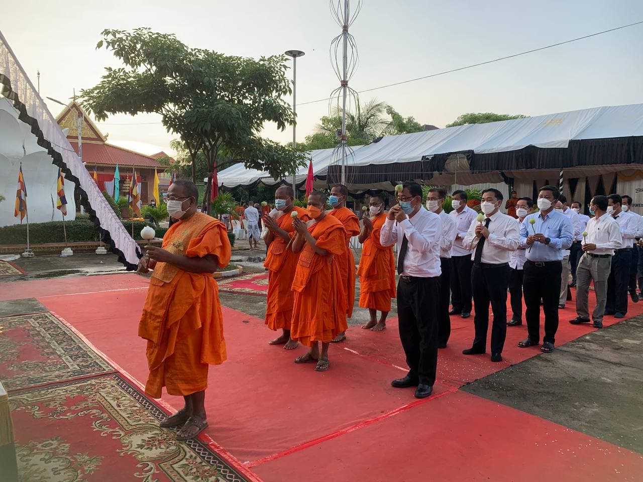 (ខេត្តព្រៃវែង)៖ នារសៀលថ្ងៃចន្ទ ១១រោច ខែអស្សុជ ឆ្នាំឆ្លូវ ត្រីស័ក ព.ស ២៥៦៥ ត្រូវនឹងថ្ងៃទី០១ ខែវិច្ឆិកា ឆ្នាំ២០២១ ឯកឧត្តម ហង្ស ឆាំឆាន រដ្ឋលេខាធិការ តំណាងដ៏ខ្ពង់ខ្ពស់របស់ឯកឧត្តមរដ្ឋមន្ត្រី ព្រុំ សុខា រួមដំណើរដោយឯកឧត្តម លោក លោកស្រី ជាថ្នាក់ដឹកនាំនិងមន្រ្តីក្រសួងមុខងារសាធារណៈមួយចំនួន បានអញ្ជើញចូលរួមក្នុងពិធីបូជាព្រះសព ព្រះជោតិថ្ថេរ ប៉េ ភន ព្រះចៅអធិការវត្តកី្តកណ្តាល ក្រុងព្រៃវែង ខេត្តព្រៃវែង។