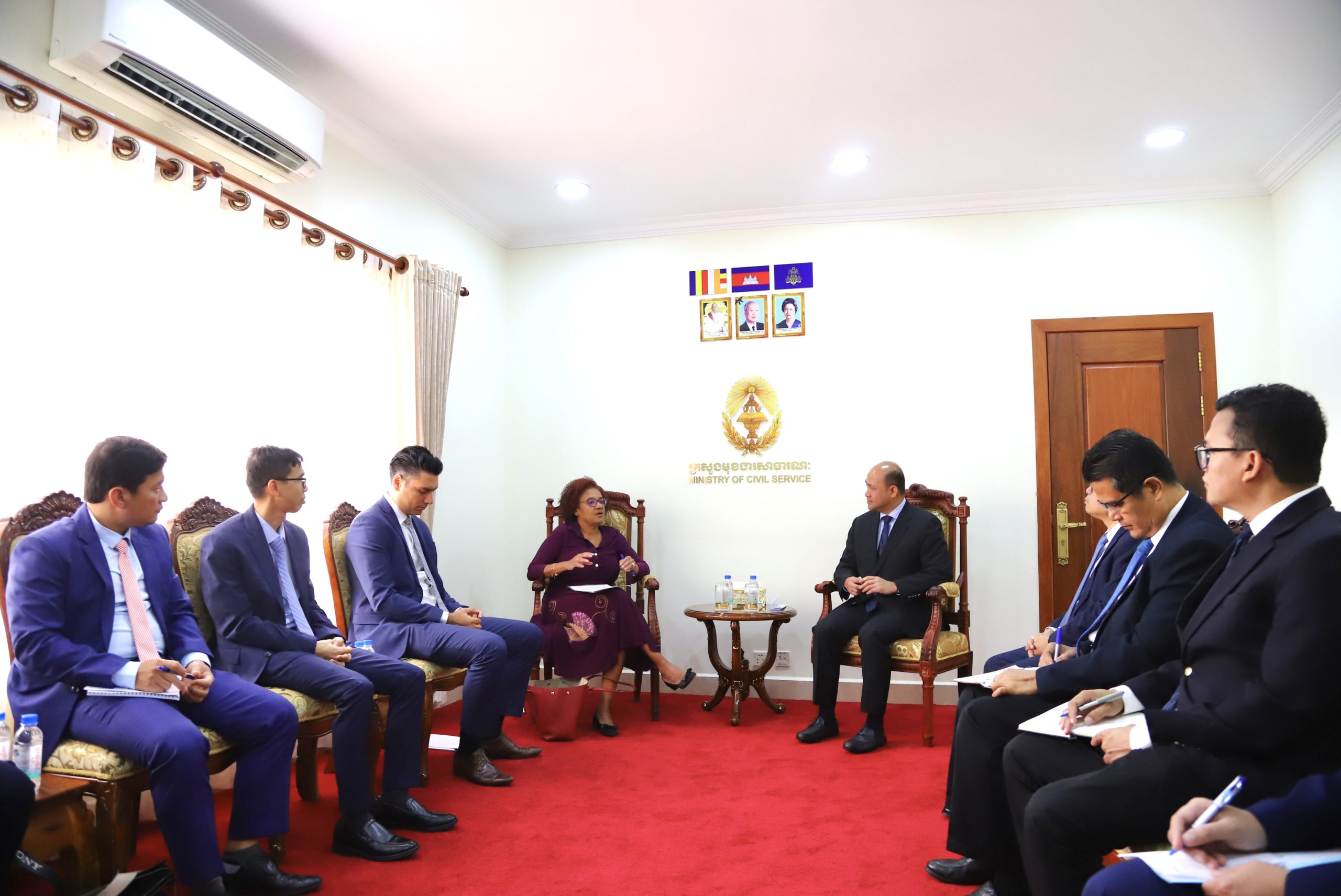 ឯកឧត្តមរដ្ឋមន្ត្រី បានកត់សម្គាល់នូវកិច្ចសហការ និងការបន្តគាំទ្រពីធនាគារពិភពលោក តាមរយៈគម្រោងវិនិយោគលើវិស័យសំខាន់ៗនានា រួមមាន វិស័យអប់រំ សុខាភិបាល និងគម្រោងការលើកកម្ពស់ជីវភាពរស់នៅរបស់ប្រជាពលរដ្ឋក្នុងមូលដ្ឋាន ដែលទាំងអស់នេះពិតជាបានចូលរួមចំណែកក្នុងការអភិវឌ្ឍន៍សេដ្ឋកិច្ច សង្គមរបស់កម្ពុជា។ ឯកឧត្តមរដ្ឋមន្ត្រី ក៏បានថ្លែងអំណរគុណចំពោះធនាគារពិភពលោក ដែលបានគាំទ្រវិស័យមុខងារសាធារណៈ ដោយការផ្តល់នូវកិច្ចសហការយ៉ាងជិតស្និតជាមួយក្រសួងមុខងារសាធារណៈ ក៏ដូចជាសាលាភូមិន្ទរដ្ឋបាល ជាពិសេសតាមរយៈជំនួយផ្នែកបច្ចេកទេស និងការសហការរៀបចំសិក្ខាសាលា វគ្គបណ្តុះបណ្តាលជាបន្តបន្ទាប់ដើម្បីអភិវឌ្ឍសមត្ថភាពមន្ត្រីរាជការនៃក្រសួង និងមន្ត្រីរាជការដែលកំពុងបម្រើការងារក្នុងវិស័យរដ្ឋបាលសាធារណៈ។