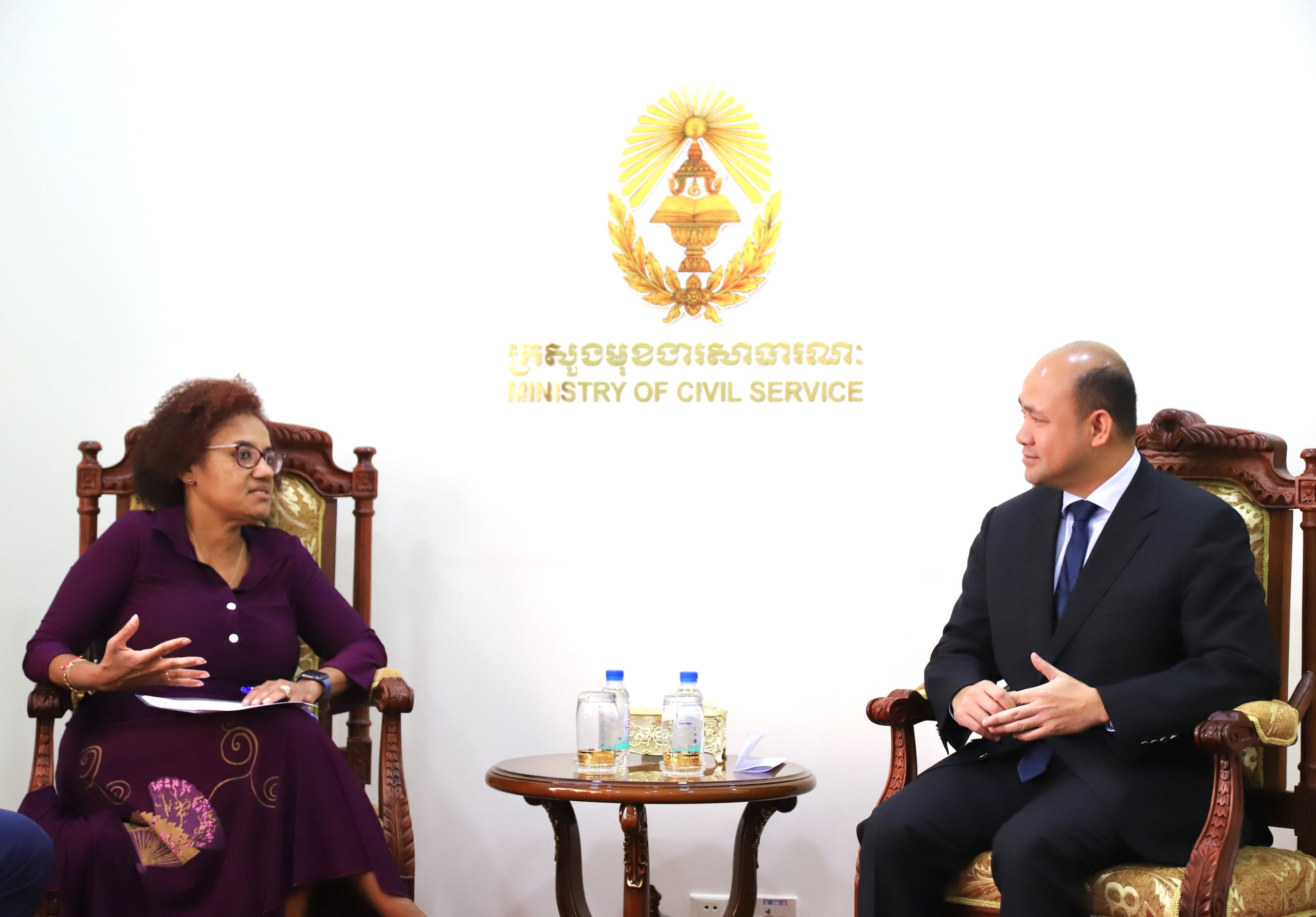 ឯកឧត្តម ហ៊ុន ម៉ានី រដ្ឋមន្ត្រីក្រសួងមុខងារសាធារណៈ បានទទួលជួបសំណេះសំណាល និងពិភាក្សាការងារជាមួយប្រតិភូធនាគារពិភពលោក (World Bank) ដឹកនាំដោយលោកស្រី Maryam Salim ជាប្រធានគ្រប់គ្រងធនាគារពិភពលោកប្រចាំនៅប្រទេសកម្ពុជា
