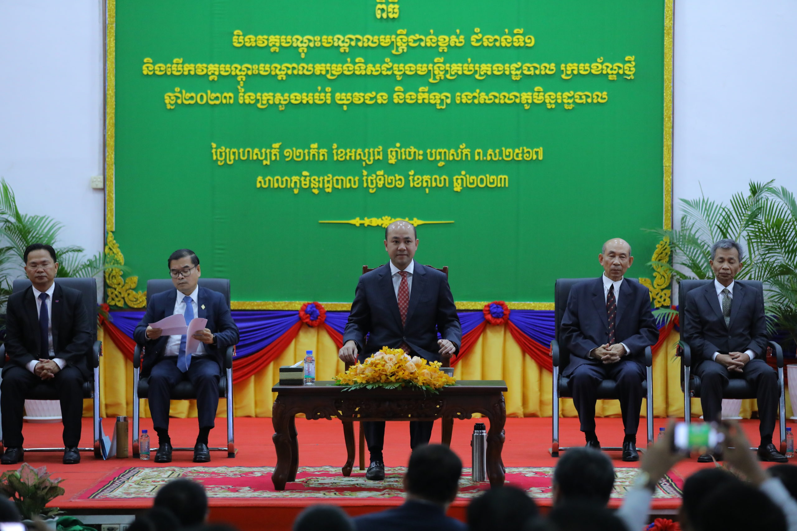 ឯកឧត្តម ហ៊ុន ម៉ានី រដ្ឋមន្រ្តីក្រសួងមុខងារសាធារណៈ និងជាប្រធានក្រុមប្រឹក្សាសាលាភូមិន្ទរដ្ឋបាល បានអញ្ជើញជាអធិបតីក្នុង «ពិធីបិទវគ្គបណ្តុះបណ្តាលមន្ត្រីជាន់ខ្ពស់ ជំនាន់ទី១ និងបើកវគ្គបណ្តុះបណ្តាលតម្រង់ទិសដំបូងមន្ត្រីគ្រប់គ្រងរដ្ឋបាល ក្របខ័ណ្ឌថ្មី ឆ្នាំ២០២៣ នៃក្រសួងអប់រំ យុវជន និងកីឡា”