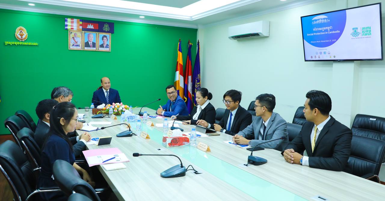 ឯកឧត្តម ហ៊ុន ម៉ានី រដ្ឋមន្ត្រីក្រសួងមុខងារសាធារណៈ បានទទួលជួបក្រុមការងារអគ្គលេខាធិការដ្ឋានក្រុមប្រឹក្សាជាតិគាំពារសង្គម ដឹកនាំដោយឯកឧត្តមបណ្ឌិត ចន ណារិទ្ធ អនុរដ្ឋលេខាធិការក្រសួងសេដ្ឋកិច្ច និងហិរញ្ញវត្ថុ និងជាអគ្គលេខាធិការក្រុមប្រឹក្សាជាតិគាំពារសង្គម នាព្រឹកថ្ងៃទី២១ ខែវិច្ឆិកា ឆ្នាំ២០២៣ នៅទីស្តីការក្រសួងមុខងារសាធារណៈ។ ក្នុងជំនួបនេះដែរ តំណាងក្រុមប្រឹក្សាជាតិគាំពារសង្គម បានសម្តែងការគួរសម ក៏ដូចជារាយការណ៍អំពីវឌ្ឍនភាព និងទិសដៅអនាគតនៃប្រព័ន្ធគាំពារសង្គមនៅកម្ពុជាជូនដល់ ឯកឧត្តមរដ្ឋមន្ត្រី និងថ្នាក់ដឹកនាំក្រសួងមុខងារសាធារណៈ ដើម្បីជាការស្វែងយល់លម្អិត និងផ្តល់ការចូលរួមសហការគាំទ្រការអនុវត្តឆ្ពោះទៅមុខ។