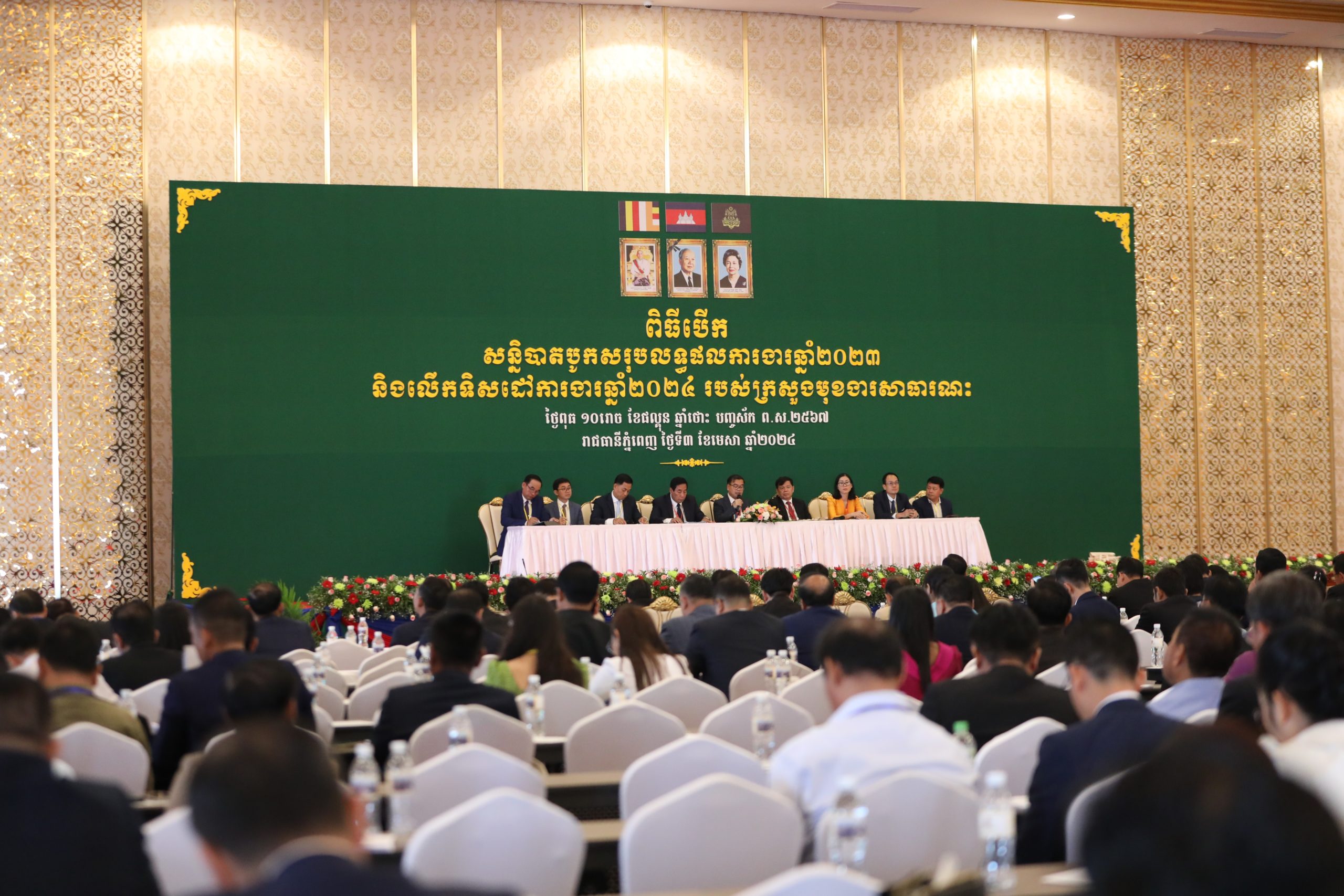 សូមជម្រាបផងដែរថា សន្និបាតក្រសួងមុខងារសាធារណៈ ប្រព្រឹត្តទៅរយៈពេលពីរថ្ងៃ គឺចាប់ពីថ្ងៃទី៣ ដល់ថ្ងៃទី៤ ខែមេសា ឆ្នាំ២០២៤។ រសៀលថ្ងៃទី៤ ខែមេសា ឆ្នាំ២០២៤ សម្តេចមហាបវរធិបតី ហ៊ុន ម៉ាណែត នាយករដ្ឋមន្ត្រីនៃព្រះរាជាណាចក្រកម្ពុជា នឹងអញ្ជើញផ្តល់កិត្តិយសដ៏ខ្ពង់ខ្ពស់ក្នុងពិធីបិទ «សន្និបាតបូកសរុបលទ្ធផលការងារឆ្នាំ២០២៣ និងលើកទិសដៅការងារឆ្នាំ២០២៤ របស់ក្រសួងមុខងារសាធារណៈ»៕