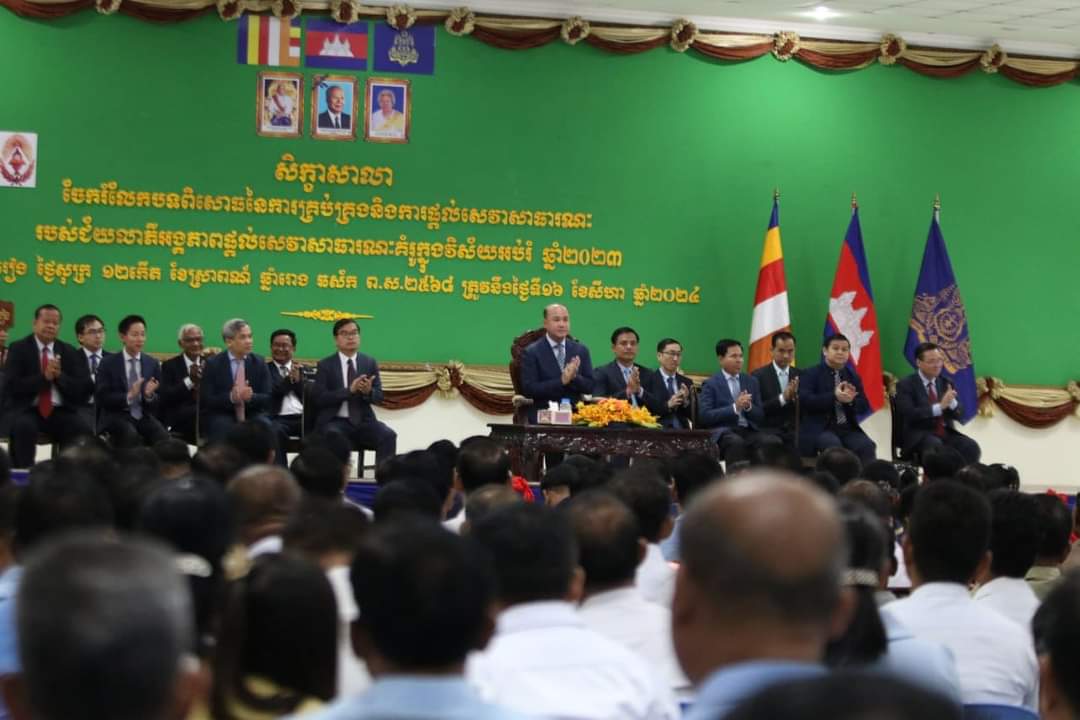 នាព្រឹកថ្ងៃទី១៦ ខែសីហា ឆ្នាំ២០២៤ ឯកឧត្តម ហ៊ុន ម៉ានី ឧបនាយករដ្ឋមន្ត្រី រដ្ឋមន្ត្រីក្រសួងមុខងារសាធារណៈ និងជាប្រធានគណៈកម្មការវាយតម្លៃអង្គភាពផ្តល់សេវាសាធារណៈថ្នាក់ជាតិ (គ.វ.ជ.) បានអញ្ជើញបើកសិក្ខាសាលាស្តីពីការចែករំលែកបទពិសោធនៃការគ្រប់គ្រង និងការផ្តល់សេវាសាធារណៈរបស់ជ័យលាភីអង្គភាពផ្តល់សេវាសាធារណៈគំរូក្នុងវិស័យអប់រំ ឆ្នាំ២០២៣ សម្រាប់កម្រិតសាលាបឋមសិក្សា។ សិក្ខាសាលានេះ មានការអញ្ជើញចូលរួមពី តំណាងសាលាបឋមសិក្សាមកពីទូទាំងប្រទេស និងមន្ទីរមុខងាសាធារណៈ ព្រមទាំងសិក្ខាកាមផ្សេងទៀតមានចំនួន ៧៤១នាក់ ដើម្បីចែករំលែកបទពិសោធ ពីអង្គភាពជ័យលាភីក្នុងការផ្តល់សេវាសាធារណៈគំរូ និងទទួលព័ត៌មាននានាឆ្ពោះទៅកាន់ការប្រកួតប្រជែងនាឆ្នាំបន្ទាប់។