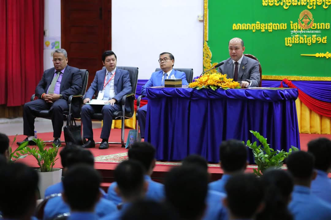 នាព្រឹកថ្ងៃទី១៥ ខែមករា ឆ្នាំ២០២៥ នេះ ឯកឧត្តម ឧបនាយករដ្ឋមន្ត្រី ហ៊ុន ម៉ានី រដ្ឋមន្ត្រីក្រសួងមុខងារសាធារណៈ បានចំណាយពេលពេញមួយព្រឹក ដើម្បីស្តាប់ការចូលរួមមតិយោបល់ និងបទពិសោធរបស់សិស្សមន្ត្រីនៃសាលាភូមិន្ទរដ្ឋបាល ដែលបានឆ្លងកាត់ការប្រឡងប្រជែង និងជាប់ជាជ័យលាភី។ ក្រោយការសិក្សានៅសាលាភូមិន្ទរដ្ឋបាល សិស្សមន្ត្រីទាំង២៣០រូប នឹងត្រូវទៅចេញទៅបំពេញការងារតាមមូលដ្ឋានគោលដៅរាជធានី ខេត្តដែលខ្លួនបានជ្រើសរើសរៀងៗខ្លួនក្នុងអំឡុងពេលដាក់ពាក្យចូលរួមប្រឡងប្រជែង។