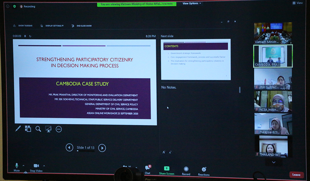សិក្ខាសាលាអាស៊ានអនឡាញ ស្ដីពីការពង្រឹងការចូលរួមរបស់ប្រជាពលរដ្ឋនៅក្នុងដំណើរការនៃការធ្វើសម្រេចចិត្ត (Strengthening Participatory Citizenry in Decision Making Process)