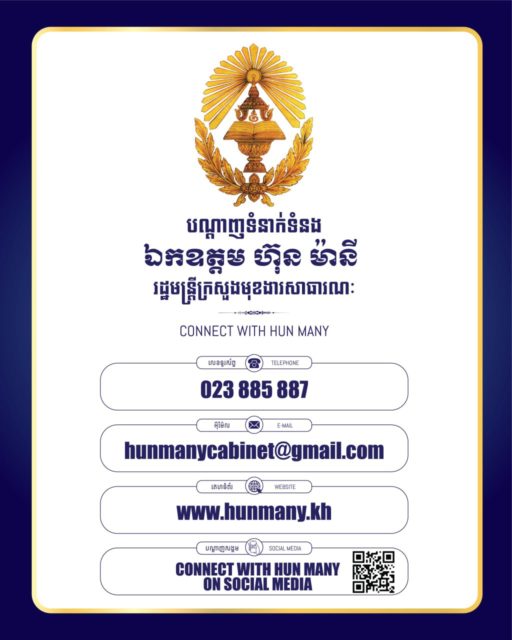សេចក្តីជូនដំណឹង អំពីការភ្ជាប់ទំនាក់ទំនងជាមួយឯកឧត្តម ហ៊ុន ម៉ានី រដ្ឋមន្ត្រីក្រសួងមុខងារសាធារណៈ