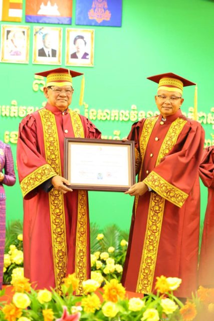 សម្ដេចក្រឡាហោម ស ខេង អញ្ជើញទទួលសញ្ញាបត្របណ្ឌិតកិត្តិយស ផ្នែកអភិវឌ្ឍន៍ជនបទ ពីសាកលវិទ្យាល័យជាតិជាស៊ីមកំចាយមារ