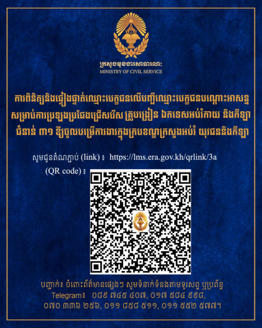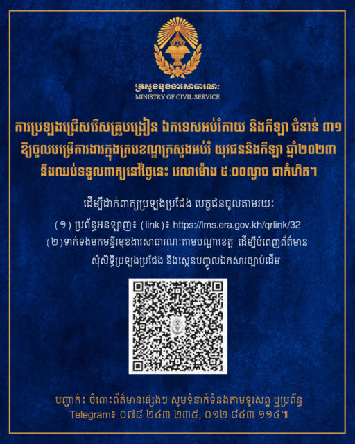 Author Archive អក្សរពីតូចទៅធំ អក្សរពីធំទៅតូច បណ្តាញសង្គម Facebook ទំនាក់ទំនងគេហៈទំព័រផ្សេងៗ ភ្ជាប់គេហទំព័រផ្សេងៗ ទីស្ដីការគណៈរដ្ឋមន្ត្រី រដ្ឋសភា ព្រឹទ្ធសភា អគ្គនាយកដ្ឋានពន្ធដារ តុលាការកំពូល និង មហាអយ្យការ អគ្គស្នងការនគរបាលជាតិ រដ្ឋាបាលព្រៃឈើ អាជ្ញាធរ អប្សារា ក្រសួងមហាផ្ទៃ ក្រសួងការបរទេស ក្រសួងការពារជាតិ ក្រសួងសេដ្ឋកិច្ច និង ហិរញ្ញវត្ថុ ក្រសួងបរិស្ថាន ក្រសួងអប់រំយុវជន និងកីឡា ក្រសួងពាណិជ្ជកម្ម ក្រសួងកសិកម្ម រុក្ខាប្រមាញ់ និងនេសាទ ក្រសួងសាធារណៈការ និងដឹកជញ្ជួន ក្រសួងវប្បធម៌ និងវិចិត្រសិល្បៈ ក្រសួងឧស្សាហកម្ម និងសិប្បកម្ម ក្រសួងរ៉ែ និងថាមពល ក្រសួងធម្មការ និងសាសនា ក្រសួងអភិវឌ្ឍន៍ជនបទ ក្រសួងព័ត៍មាន ក្រសួងធនធានទឹក និង ឧតុនិយម ក្រសួងទំនាក់ទំនងជាមួយរដ្ឋសភា-ព្រឹទ្ធសភា និង អធិការកិច្ច ក្រសួងកិច្ចការនារី ក្រសួងទេសចរណ៍ ក្រសួងសង្គមកិច្ច-អតីតយុទ្ធជន និង យុវនីតិសម្បាទា ក្រសួងសុខាភិបាល ក្រសួងយុត្តិធម៌ ក្រសួងការងារ និង បណ្តុះបណ្តាលវិជ្ជាជីវៈ ក្រសួងរៀបចំដែនដី នគរូបនីយកម្ម និង សំណង់ កិច្ចប្រជុំពិភាក្សា និងពិនិត្យលើផែនការសកម្មភាពរបស់ក្រុមការងារបច្ចេកទេសទាំង៣ នៃអនុគណៈកម្មាធិការប្រតិបត្តិ គ.វ.រ. 1759 Views | ១១-មករា-២០២៤ សេចក្ដីណែនាំអន្តរក្រសួង ស្ដីពីការបើកផ្ដល់បៀវត្ស និងការគ្រប់គ្រងការផ្ទេរបុគ្គលិកអប់រំនៅរដ្ឋបាលក្រុង ស្រុក ខណ្ឌ របស់ក្រសួងមុខងារសាធារណៈ ក្រសួងសេដ្ឋកិច្ចនិងហិរញ្ញវត្ថុ ក្រសួងអប់រំ យុវជន និងកីឡា ក្រសួងមហាផ្ទៃ 2302 Views | ១០-មករា-២០២៤ គណៈកម្មការរៀបចំការប្រឡងប្រជែង រៀបចំប្រជុំពិភាក្សាពិនិត្យវឌ្ឍនភាពការងារប្រឡងប្រជែងជ្រើសរើសក្របខណ្ឌគ្រូបង្រៀន ឯកទេសអប់រំកាយ និងកីឡា ឱ្យចូលបម្រើការងារក្នុងក្របខណ្ឌក្រសួងអប់រំ យុវជន និងកីឡា សម្រាប់ឆ្នាំ២០២៣ និងការត្រៀមរៀបចំការប្រឡងប្រជែងជ្រើសរើសក្របខណ្ឌរបស់ក្រសួង-ស្ថាប័នដទៃទៀត 1638 Views | ១០-មករា-២០២៤ គណៈកម្មការរៀបចំការប្រឡង សូមជម្រាបជូនសេចក្តីជូនដំណឹងស្តីពីការពិនិត្យបញ្ជីឈ្មោះបណ្តោះអាសន្ន សម្រាប់ការប្រឡងប្រជែងជ្រើសរើសគ្រូបង្រៀន ឯកទេស អប់រំកាយ និងកីឡា ឱ្យចូលបម្រើការងារក្នុងក្របខណ្ឌក្រសួងអបរំ យុវជន និងកីឡា។ 1983 Views | ៨-មករា-២០២៤ បុស្បុករូបសំណាកព្រះគ្រូធម្មាចារ្យ គឹម ច្រែង និងសម្ដេចអគ្គមហាសេនាបតីតេជោ ហ៊ុន សែន កាលនៅពីកុមារ ត្រូវបានសម្ពោធដាក់ឱ្យប្រើប្រាស់ជាផ្លូវការក្រោមអធិបតីភាព ឯកឧត្តម ហ៊ុន ម៉ានី តំណាងដ៏ខ្ពង់ខ្ពស់ សម្តេចមហាបវរធិបតី ហ៊ុន ម៉ាណែត នាយករដ្ឋមន្ត្រីនៃព្រះរាជាណាចក្រកម្ពុជា 1617 Views | ៨-មករា-២០២៤ កម្មវិធីកំពុងដំណើរការ៖ ខណៈនេះ បុស្បុករូបសំណាកព្រះគ្រូធម្មាចារ្យ គឹម ច្រែង និងសម្ដេចអគ្គមហា